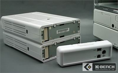 每个模组采用的是一种特殊的接口和主机相连,这种接口同时负责电源的供应和数据的传输。另外,光驱和硬盘的模组在从主机上取下后还可以独立使用,通过在光驱和硬盘模组上再外接一个适配器的方法就可以方便的让它们成为外置的光驱、硬盘。