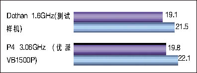对于高主频的Dothan来说,其在性能方面将会有更好的表现,据一些国外媒体的测试标明2.4GHz的Dothan测试成绩居然全面超越Pentium 3.4GHz,就连P4EE 3.4GHz在某些测试中也败下阵来,这更令我们对Sonoma移动平台的性能充满期待。