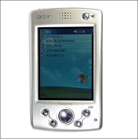 Acer宏基所推出的产品一向以实用优先,这款N10也是如此。13.5mm、7.8mm、1.7mm的三维中规中距,165克的重量也在可接受范围内。千万不要以为N10看上去很呆板,我们在这款PPC上发现其实宏基的外观设计也是非常出色,整个N10采用流线型设计,按钮的设计美观精致,拿在手上的仿若是一件艺术品。N10内建Pocket PC 2003 操作系统,再搭配上PXA255 300MHz处理器,主流的64M RAM,32M ROM配置,处理一般应用绰绰有余。其最大的特点是双插槽扩展设计,可以使用SD/MMC或是CF Type I/Type II设备,这样设计的好处的不言而喻的,摆脱了使用扩展卡后不能外接设备的限制。N10另外一个值得推崇的地方就是其1500mAh容量的锂电池,更大的电池容量意味着更长的使用待机时间,由此带来了极大便利。目前N10的售价在2300?2500元之间,比XP208稍贵。