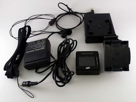 除了本机以外,包括耳机、充电底座和外接电池盒、AC电源适配器、表带和脖子挂带。