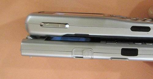 从这个角度能够看出,X610和X120双双支持红外传输,而X610位于机身左侧的耳机插孔上已经不再是传统易脱落且不耐脏的橡胶塞,而是改用推拉的机壳同质材料,这也是三星2004年新品的一个重要变化。