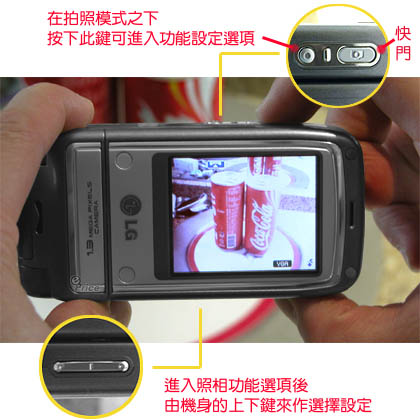 进入拍照模式时,T5100 的操作方式宛如数码相机,快门位于右上角,旁边则为功能选项键。进入选项之后,拍照模式与录像模式的选单大致相同,可分别针对光源、白平衡、色系、分辨率、场景、相框来作选择设定。