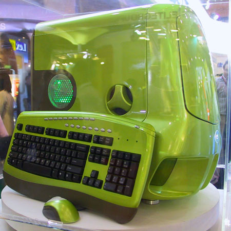 今年当然也不例外,在华硕的展台上看到了一个很有个性的个人整机系统:Vento 3600。超现实感的外观设计,给人在第一视觉就有很强的冲击力,让人感觉到是从外太空带来的灵感。 醒目的苹果绿正是今年的流行色,相信很多人会喜欢,在炎炎夏日使用这样的一款个人整机系统,也一定会让人倍感凉爽吧:P