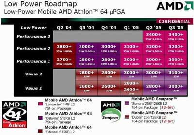 之后,移动Sempron将改以采用未知的32bit Sonora核心,配备256/128KB L2缓存,在明年Q1到Q3相继有3000+和3100+面市。
