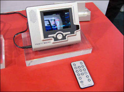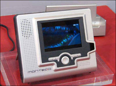 2001 Technology公司的Montego。搭配了3.5英寸的LCD,像素数为320×240。它不但内置了20 GB的2.5英寸硬盘,同时野提供了CF卡插槽,可以增加容量。比较特别的是它还附带了红外线的遥控器。从外观上,还可以看得出来,机身附带了扬声器。