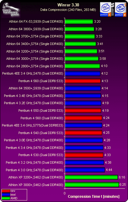 新发布的6款处理器均支持800MHz FSB和HyperThreading技术,在命名方式上进行了重大改变;而新推出的芯片组则支持PCI-Express接口、DDRII内存、新的音频处理方案以及更多的细节变化,由于增加的新技术非常多,因此新处理器和新芯片组的测试也广为关注,外国的硬件网站已经先期拿到了新的产品,新处理器和测试已经随Intel的新品发布同步推出,著名硬件网站Tomshardware.com拿出了长达几十页的评测报告,现摘录重点如下: