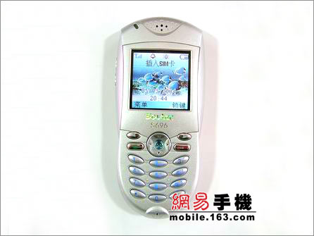 ??S696是一款平板机,108×48×21mm的三围尺寸明显较大,不过由于其机身采用了一个独特的曲线设计,所以拿在手里感觉还不错,但是由于重量不够所以给人一种轻飘飘的感觉。和很多低端国产机一样功能的单一和缺乏扩展能力一直以来是其最大的弊病,这次的S 696很不幸的拥有了这二个最大的毛病,功能上简单到了极点,除了一般手机的功能以外,什么MMS、无线下载啊,统统都没有。好在对于其价格只有850元,所以“价廉遮百丑”,何况对于一般的用户S696的功能也算是相当够用了,所以这还是一款值得推荐的产品。
