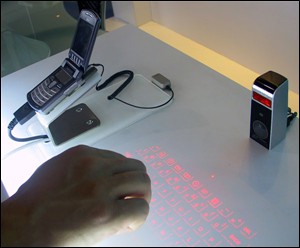 三星使用了内嵌Palm OS的SPH-i500智能手机来演示这款虚拟键盘。由于三星的这款虚拟键盘仅仅是研发中的样品,我们还没有关于它的更详细的资料。美国一家名为iBiz的公司也在最近发布了一款虚拟键盘。这款虚拟键盘官方的价格为99美元。它可以应用在许多掌上设备中。