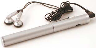 这款圆珠笔型MP3播放器具有MP3播放以及数码录音功能,采用一节五号电池供电,并且内置了USB1.1接口和128MB闪存。不过当使用数码录音功能的时候,是不能够使用圆珠笔的,整个MP3播放器的外形尺寸为150×16mm,重量是60g。