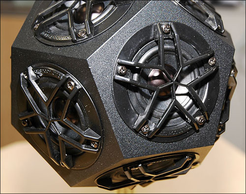 这款型号为SA-355i的音箱采用了独特的机身12面体设计,2个一组的音箱配合上单独的音箱控制及音频格式转换器SA-E355就组成了这套独具特色的扬声系统。音箱的售价为每个4万日元,而控制盒的售价为2万日元。
