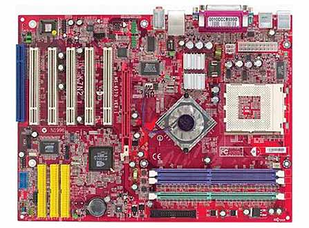 采用nForce2 Ultra 400+MCP组合,由于nForce芯片组的主板发热量大,所以在其供电电路的控制元件上加上了散热片,北桥加装风扇,可见其研发工程师用心之良苦。作为一线的大厂,做工保持着较高的水准,且这块主板仅售599,竞争力相当高,对二三线厂商造成很大的压力,非常适合不超频追求稳定的用户。