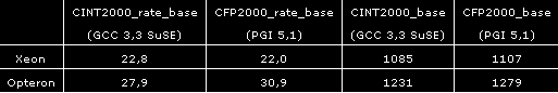 对于Intel首款X86-64位处理器的性能怎么样呢?在SuSE OS下频率高达3.4GHz的Xeon性能不及AMD的2.2GHz的Opteron,看来Intel X86-64位处理器的性能不容乐观!