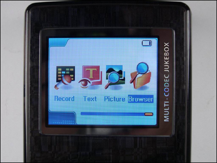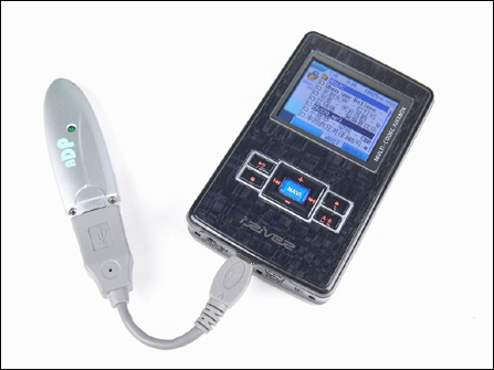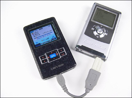 OTG功能(USB HOST),可以直接与符合USB Mass Storage规范的设备通讯,目前市面常见的移动硬盘、U盘、读卡器、数码相机、无驱MP3播放器等数码设备基本上都使用的是这个规范。上图是与iRiver H100互传数据。H300系列提供了简单的文件管理器,可以在播放器上进行复制、粘贴、删除等操作。