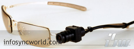 这款相机采用的是小型的QVGA 320 x 240影像捕获芯片。每对眼镜的旁边都会有一个小巧的镜头。它连接着一个小型的处理包,包内集成了一个2000 mAh的电池,可以连续工作4个小时。只要按下按钮它就可以记录下视频影像,并且保存在SD卡上。你可以选择320 x 240 24bit的分辨率,也可以选择320 x 240 16bit的分辨率。它的可视角度为60度。它自身备有可穿戴的盒子可以用来和PC的USB端口连接。它录制的是Media Player 8格式的影像,所以文件体积会大一些。64MB的SD卡只能记录约30秒的视频信息。此款摄像头眼镜的售价约为399.99美元。