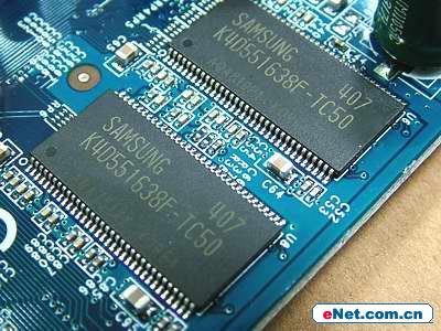 性能方面,由于采用的是GeForce FX5700LE核心,所以其核心频率为标准的250MHz。显存方面,其使用了三星5ns TSOP封装的显存颗粒,正面共有8颗。值得一提的是,此款技嘉GeForce FX5700LE与普遍的GeForce FX5700LE不同,其显存容量扩大到了256MB,这也是此款显卡在性能方面有所提升。显存位宽为128bit,显存频率500MHz。
