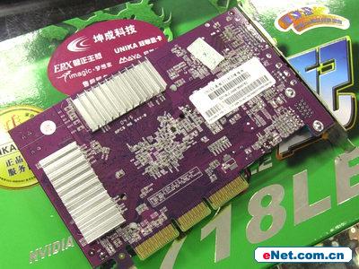 而在频率方面,5718LE增强版的核心/显存频率为??250/400MHz,这个数值和R9550一致;但显卡的显存采用了2.8ns/mBGA颗粒,容量为128MB,显存位宽为128bit,在加装显存散热片的情况下,超到其额定值700MHz应该不是太难。最后显卡支持VGA+TVOUT+DVI输出,目前此款显卡的市场售价为799元。
