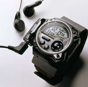 如果除掉表带及耳机插孔,WMP-1的体积只有宽55mm、高45mm、厚19mm而已,重量也只有70g,比一般电子手表稍重。如果你要听MP3时,只要按下播放键约2秒钟,WMP-1就会自动切换到MP3模式并播放歌曲,如果你只想切换到MP3模式而不想播放歌曲,可以按MODE键约2秒钟,WMP-1也会切换到MP3模式,不过不会播放歌曲。WMP-1在切换到MP3模式并播放时会有微小的杂音,但并不影响音质。WMP-1所输出的音质清晰,而且还有五段EQ均衡设置可供选择,可分别增强低音或高音。在附加的功能上有单曲循环、全部循环、随机循环播放,液晶显示屏还可以显示曲目、播放时间,最特别之处在于左下角竟然还有动画显示,能将歌曲讯息一个字一个字的显示出来,支持ID3卷标,也可以自行设计动画,再通过软件传到WMP-1中。