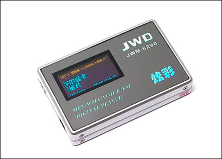 京华JWM-6290 京华JWM-6290是首款采用OLED屏幕的国产MP3,号称“魔影”。它采用了手机外屏上常用的OLED屏幕,由于无需背光照明,OLED屏不仅体积更为轻薄,画面更为鲜艳;而且更为省电,可以持续更长时间的播放。京华JWM-6290是继MSC PN128之后,国内市场上出现的首款OLED屏幕的MP3,其在任何光线下都清晰和熠熠生辉的特色令人称道,而京华品牌在MP3领域的实力也可见一斑! 具体功能配置上,京华JWM-6290支持MP3、WMA音乐格式播放;支持FM调频收音,并可预设20个心爱的电台;支持录音,和FM收音内录;支持A-B复读功能;配备了线控,内置锂电池,可直插USB接口充电;支持屏保和图片菜单;配备OLED显示屏,支持中文显示歌曲名、歌手名和歌词同步显示,而其歌词同步显示的功能相当实用,学生一族可将其充当复读机来学习外语,边听边读的方便、和一行显示两行文字的大屏幕还是相当不错的!