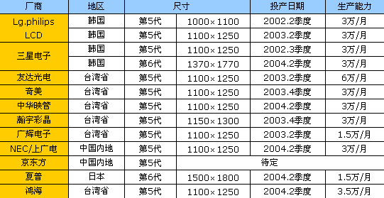 生产线的变更指上游的面板厂商将TFT基板的生产线过渡到了第五代(以下简称5代线)。而5代线的稳定量产本应带来面板产能的大幅度提升,但在此时,面板的切割尺寸与供货方向却悄然改变。面板厂更喜欢将17英寸或更大的尺寸作为显示器面板的切割尺寸;此外,面板的供货方向也逐渐趋向于那些对价格不敏感、利润更丰厚的液晶电视以及笔记本电脑领域。