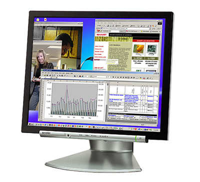 Sharp的T15G4液晶显示器系列有LL-T15G4-B和LL-T15G4-H两款,前者是是黑色外壳,而后者为白色,两者都为260nit的亮度,350:1的对比度和轻薄设计。L-T15G4轻薄紧凑的结构,内建立体声扬声器,生动的显示和宽可视角度(水平160度,垂直135度),都流露出一股唯美的时尚气息。LL-T15G4还有一个特点,它能够同时接受两台不同电脑的输入信号,需要另购连接线。下图就是LL-T15G4-H。