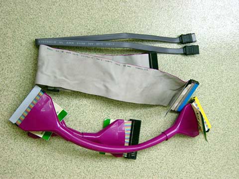 以上是SATA连接线和PATA连接线做的比较,很明显,SATA数据连接线大约只有PATA数据线的十分之一宽,即使和笔者EPOX磐正主板附赠的改进型PATA线相比,也是占有了极大的优势。在连接长度上,SATA数据线提供最长1米的连接,也优于PATA的数据线。您可千万别小看这数据线,在您的安装设备的时候,SATA数据线将给您带来极大的方便,而且对整个机箱布局和散热都有很大改进,您可以从此和又宽又硬的PATA线说bye-bye咯。