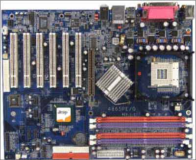 这款产品使用了i865G+ICH5,采用了大板设计,支持最新的Prescott处理器,支持SATA,无论从设计还是用料可以说中规中矩,价位大概在750左右,可以说这块产品相对于大牌价格便宜,相对于国内品牌又多了一份放心,是一种不错的折中选择。