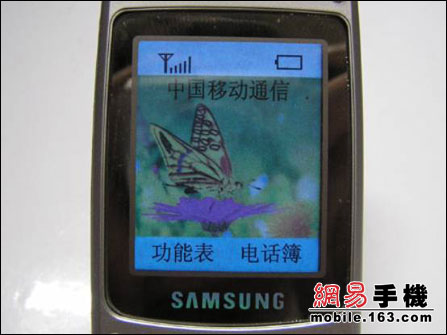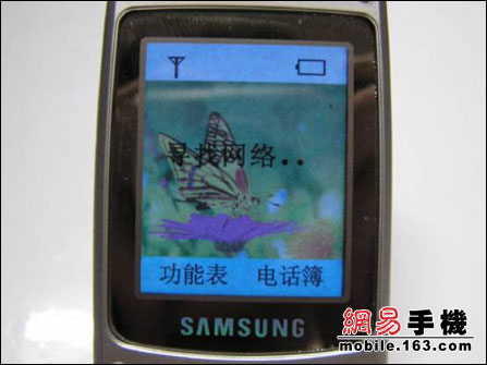 ??短暂的忐忑和等待后,出现了待机画面,以及“寻找网络..”的提示??嘿,还真神奇了,“中国移动通信”在“寻找”之后乖乖地出现了,难道假机壳里面还真是真材实料?
