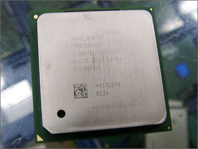 而上图的P42.8C处理器,其800MHz的前端总线速度,以及超线程的先天性优势,使其在台式机的CPU领域占居一个较为有利的地位。相比之下,Intel的CPU由于大家无法见到其内部的结构,因此,JS也很难有机可乘。