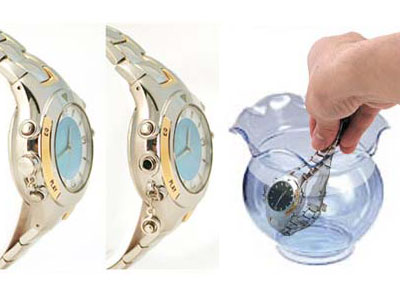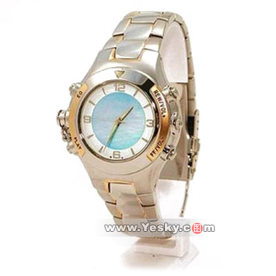 由日本THANKO有限公司发布的ANALOG MP3防水手表,可谓独具特色。MP3手表如今已是不新奇了,但是防水的MP3手表倒是第一家。这款手表MP3支持32kbps~256kbps的MP3格式音乐文件。手表盘上配有LED显示提示操作,所有控制按钮均通过手表的多用途按键实现。当接驳上个人电脑时回自动停止使用内置式充电电池并通过USB口进行充电。充一次电可以听大约九个小时的音乐。这款防水手表供提供天蓝色和珍珠黑色可供选择,而在手表内置的记忆体容量则有128MB,256MB两种。此款MP3手表在3到10大气压下具有防水功能。而日常的洗手,外出下雨所沾的雨水更不会影响正常的使用,特别适合那些洗澡时不喜欢拿下手表的“懒汉”们使用。