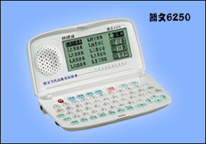 现在除了《牛津当代大辞典》外,《朗文当代高级英语辞典》也是一部重量级的英文辞典。这款朗文6250就内含了《朗文当代高级英语辞典》,除此之外还有 英汉/汉英/汉语/英英/网络辞典/雅思词汇/万用百科等等,内容也相当丰富。手感相当不错。机器上那么大的喇叭表明了身份--来自好声一族系列。经过测试,采用TruVoice原音英语发声系统及粤语/国语发音的朗文6250真的非常不错。其他的记事啊,记电话啊,游戏功能啊,旅游指南啊也都齐全。800元的售价在快译通系列中比较合适。
