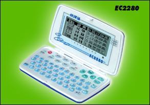 快译通系列的产品线也是相当丰富。出了权威的牛津系列和发声系列。对于要求不高的人们来说。轻巧系列是不错的选择。这一款EC2880价格就比较低廉,市场价298元。独有雅思、GRE、GMAT、大学四级、六级词汇。对于学英语只是应付考试的人来说完全够用了。小巧的外形,透明的按键比较舒适,不过稍微偏软。没有发声系统。只能学哑巴英语了。其他记事啊,资料啊都还比较齐全。不过在快译通品牌中这个价钱也算一分钱一分货了。