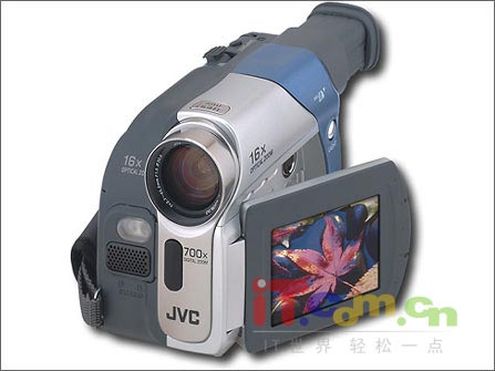 在外壳颜色上,D33AC采用了银色和海蓝两种颜色作为机身外壳,外形比较时尚,机身尺寸为71×91×118毫米,重量约为590克(不包括电池和数码摄像带),显得比年的产品小巧了不少。 和其他的入门级数码摄像机一样,它采用的是1/6英寸、80万像素的CCD影像感应器,采用了三维数字降噪(DNR)电路,拥有16倍光学变焦,还配备了高亮度、低耗电的“Auto LED Light”发光二级管,有点象松下去年推出的DS60的设计,当光线较昏暗时,摄像灯会自动打开,保证摄像画机的画质。在明亮的环境中,摄像灯会自动关闭,减少电池的消耗,让你在光线昏暗的场所也能进行拍摄;通过模拟数码转换功能可将其它VHS-C或8毫米录像带的模拟信号,转变成数字信号,以达到更好的数码影像输出功能;配备了“快速电源关闭功能”,在拍摄的时候同时如果关上取景器和LCD液晶显示屏,机器会自动关掉电源,既方便又省事。 最令人惊讶的是,JVC的D33AC在取景装置上采用的是彩色取景器和2.5英寸、11.2万像素的clearness彩色液晶显示屏,一般在这个价位档次的机器上一般配备的都是黑白取景器的,要知道配备彩色取景器的机器可要比黑白取景器的机器贵上500元左右呢,但是D33的价格却能保持不变,真是难能可贵!喜欢双彩配置的朋友可要重点考虑这款机器了,因为到目前为止,除了D33AC,这个价位的数码摄像机还没有配备彩色取景器的呀!