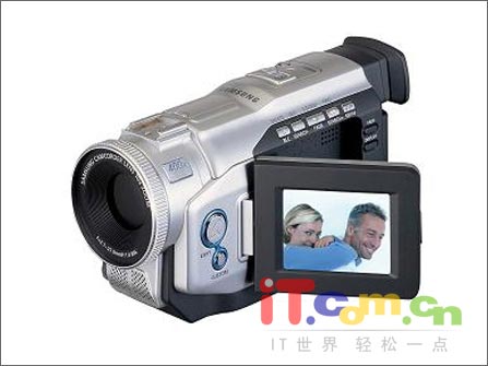 它使用了 1/6英寸、80万像素CCD影像感应器,拥有10倍光学变焦和400倍数码变焦,2.5寸彩色液晶屏幕,PCM数码立体声,简易导航旋钮,彩色中文菜单, IEEE1394端口,支持红外夜摄,PCM数码立体声,这款机器目前已经降了N次价,现价为2800元左右。 这款数码摄像机的尺寸为 63 X 90 X 178毫米,稍微有点大,外形也有些过时的感觉,不是那么合乎当前的欣赏口味,但是简易导航旋钮和彩色中文菜单使得这款机器操作起来十分顺手,体形的增大也能让人觉得有一些专业的味道,所以仍有不少学生族购买,估计在市场上还能坚持数月吧!