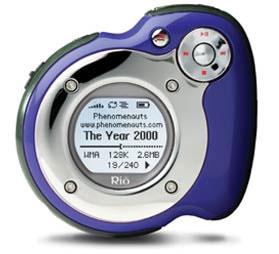 RIO的这两款MP3造型都非常奇特,采用微型硬盘作为存储介质,配备一块类似iPod的白光单色液晶屏,并且支持SD/MMC卡(可以做数码伴侣用了),支持MP3,WMA等格式的音乐,连续播放时间可以长达20个小时。
