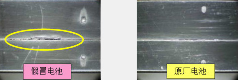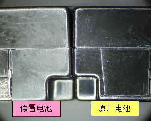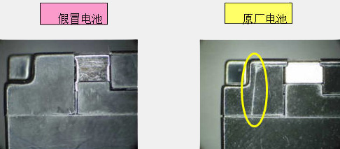 3.假冒电池的侧面结合处有较明显的缝隙,原厂电池则没有。