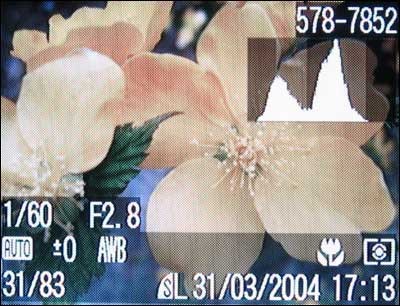 屏幕色彩过于苍白,感觉就像三菱的手机屏幕一样缺乏生机!好在只是粗略的浏览。显示的信息还是非常丰富的,而且配备了和A80一样的直方图显示,有助于用户掌握正确的曝光量。