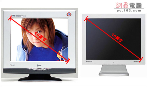 17英寸CRT与15英寸LCD的可视尺寸对比