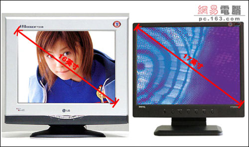 17英寸CRT与17英寸LCD的可视尺寸对比