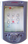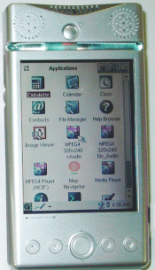 这个可是蓝色巨人出品的PDA哦,不过样子实在不敢恭维。发布于2003年1月的IBM e-LAP也是一款采用Linux系统的PDA。采用的是IBM PowerPC 405LP处理器。32MB SDRAM和32MB Flash (NOR)。4英寸的显示屏虽然够大,但是加上头上两个牛角的装饰是不是过于肥大了?1700 mAh的电力估计是PDA上见过的最大的电池容量。整个机器继承了IBM一贯的高科技,十分强大。当然,IBM每天在全球24小时不断研究的Java成果当然在IBM e-LAP也有体现。IBM's WebSphere Micro Environment就是最好的证明。palm上现在也在用这一成果。