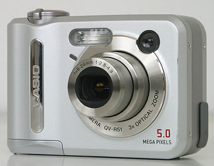 卡西欧 QV-R51外型看起来相当小巧,手感也不错,并采用镁合金外壳。整机仅重160克,可以轻松放入上衣的口袋,携带非常方便。 卡西欧 QV-R51具有3倍光学变焦镜头,光圈范围F2.8 - F4.9,焦距范围8-24mm,等效于35mm传统相机的39-117mm。开机速度仅为1秒、快门时滞也只有0.01秒。全自动拍摄操作。