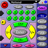 学习型遥控器是充分利用Palm的红外线传输口的有趣软件,只要把别的电器的遥控器对准Palm的红外线口一按,Palm就能记下信号,以后就能用Palm来控制家电了。对于学生的实际价值嘛,当然是教室里挂着那几台空调机了。上图为著名的遥控软件NoviiRemote。