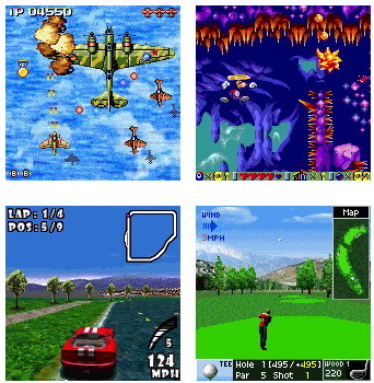 对于开放的Palm平台来说,游戏肯定是不会少的。Palm的游戏有诸如雷曼这样的动作游戏,也有一些象棋、方块、接龙之类的轻松小游戏,还有GameBoy之类的模拟器(这个在低端机器上运行非常慢)。游戏是不少,不过还是建议不要花太多时间。但是有时在机器里放上一两个游戏还是有点必要的。上面依次为攻击西伯利亚、雷曼、GTS赛车(3D)和ZIO的高尔夫球(3D)游戏。