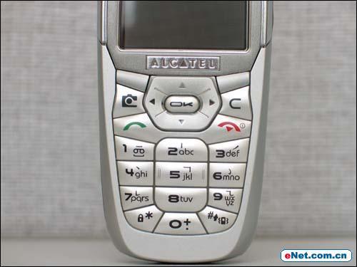 键盘的整体布局是采用各种不规则的图形并合而成,按钮采用软塑料制造,下按的质感非常舒适,同时也不会让你感到费力。在实际使用中按钮会为你带来一种柔中带刚的感觉,回馈的力度也恰到好处。按键在机子上有规律地呈左右分布,全银色的按钮以及整个键盘的弧线变化带来了良好的视觉效果。在功能按钮方面,OT756舍弃了原来的摇杆控制按钮,取而代之的是的现时流行的五维导航键。值得一攒的是,虽然在小巧的机身上整合了宽大的显示屏,但这样一点也不影响键盘的使用,同时按钮的键程比较适中,就算是手掌较大的用户也能够适用。
