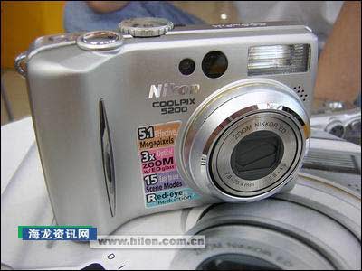 据海龙电子城商家介绍,前不久尼康发售的新机CP5200的销量一直不错。作为尼康时尚DC的代表作之一,价格仅3500元不到的CP5200不仅具有紧凑的全金属外壳,而且在形体上也要比2200以及3200小巧许多。它采用了500万像素CCD和尼康最新开发的3倍光学变焦ED(特殊低色散玻璃)尼科尔(Nicol)镜头,按35mm胶片换算,焦距38-114mm,广角端F:2.8,备有15种场景模式。