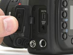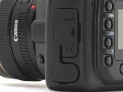 得益于DIGIC II处理芯片,20D使用了USB 2.0高速接口,传输大照片不用再忍受痛苦了。USB接口下方是视频输出接口、PC闪灯同步接口和电子快门线接口。20D的接口盖也和机身表面基本齐平了。