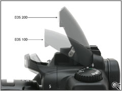 20D的内置闪灯位置更高,佳能声称FOV覆盖达到17mm,并支持E-TTL II,闪灯测光更加准确。 |