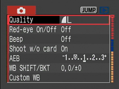 20D的菜单界面稍作变化,需要按JUMP键进行跳页 |