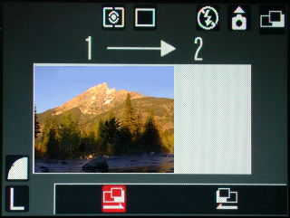 全景模式通过屏幕上提示的步骤将一套的连续照片叠加成为一整张图片。用户利用脚架固定相机,选择从左到右或从右到左的方式将拍摄的多达26张照片拼合起来,从第一张照片拍摄开始便将白平衡和光圈快门等参数锁定,直到推出全景模式,通过这样的限制来取得稳定的画质。