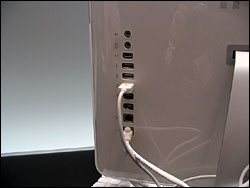 在非常薄的机体上,iMac G5提供了2个IEEE 1394a接口,3个USB 2.0接口,以太网接口和AirMac Express(IEEE 802.11g)无线接口。图形卡采用nVIDIA的GeForce FX 5200 Ultra显卡(64 MB显存)。液晶屏幕为宽屏,包括17英寸(1,440×900像素)和20英寸(1,680×1,050像素)两种。尺寸和重量方面,17英寸屏幕的机型为426×173×430mm(宽度×纵深×高度),8.4kg;20英寸屏幕的机型为493×189×472mm(宽度×纵深×高度),11.4kg。