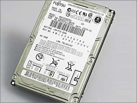 Notebook用硬盘现时大多以5400rpm为主,虽然相比桌面机种普及的7200rpm为慢,但始终Notebook硬盘技术要顾及控制稳定性、热量和温度等多项因素,所以速度稍逊于普通硬盘,亦是无可厚非。但某些Notebook厂商因成本问题,采用4200rpm的硬盘,效能会明显慢一截,故同学们选购Notebook时最好问清楚其转速为何。另一方面, Notebook用硬碟机容量大约以40G-60G为主流,大家可视乎自己的需要来选择容量大小。